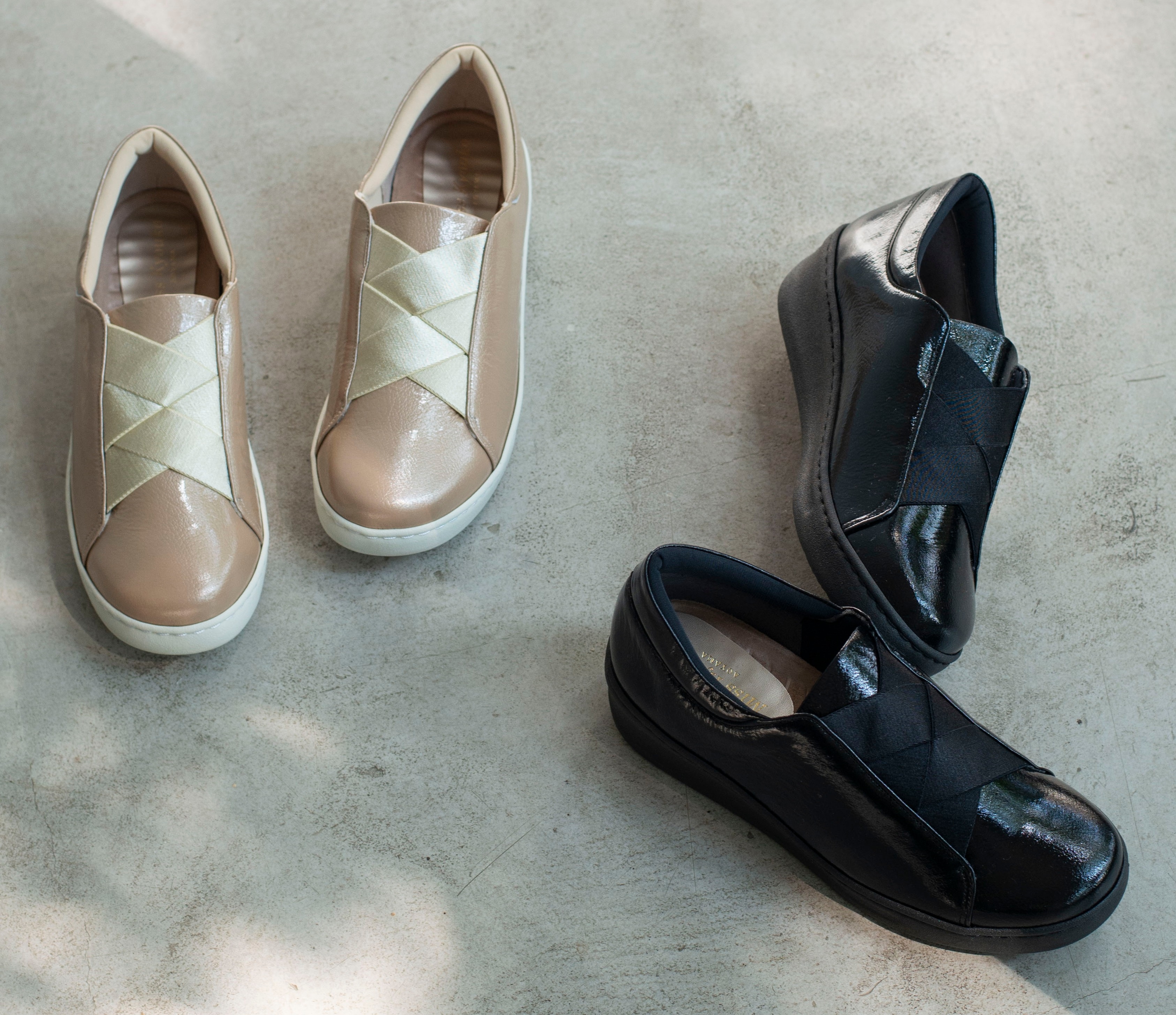 4Eクロスゴムオパンケエナメルスニーカー 各19,800円