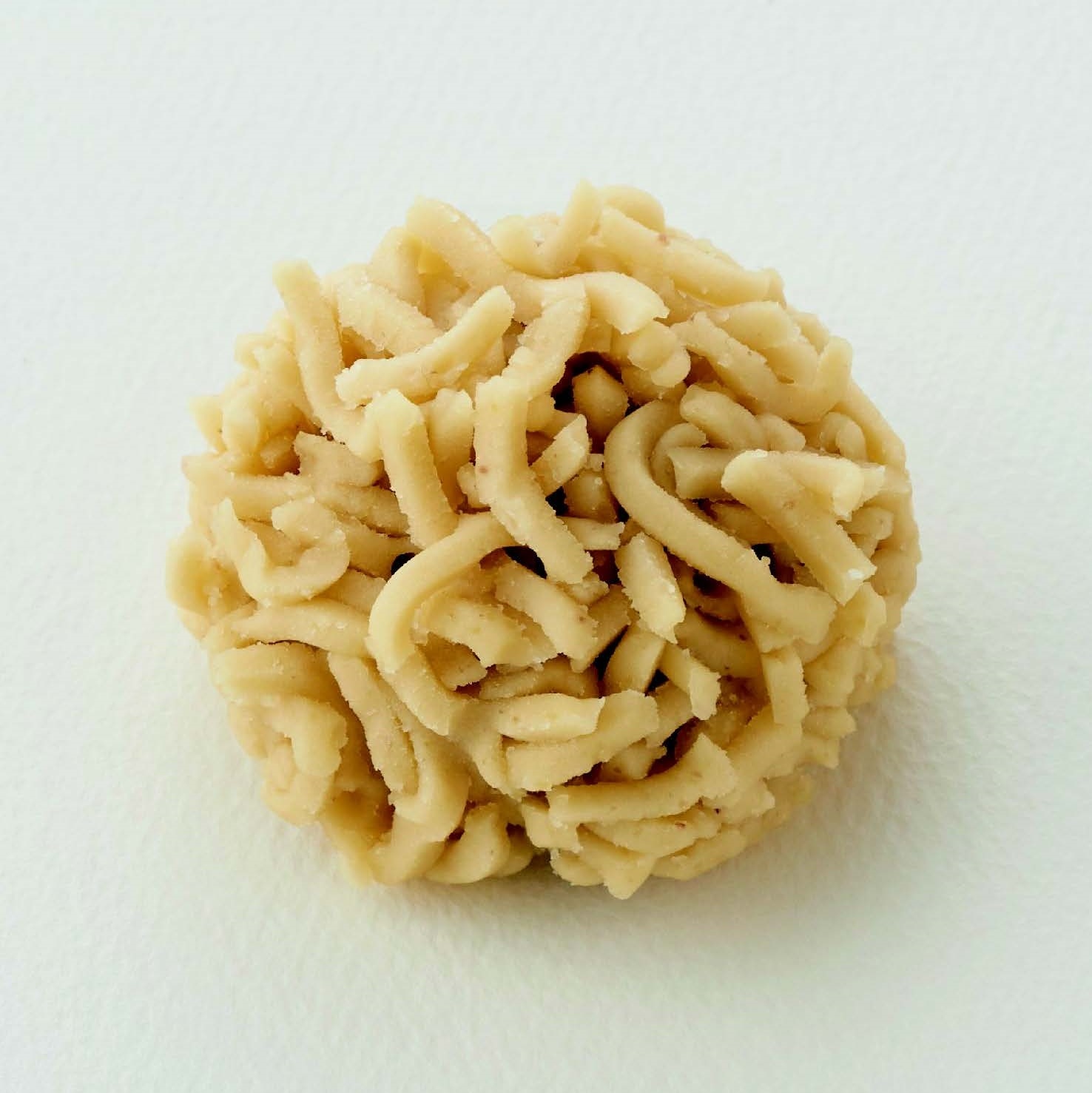 裏漉しした栗と白餡を混ぜたそぼろを、餡を包んだ求肥につけました。