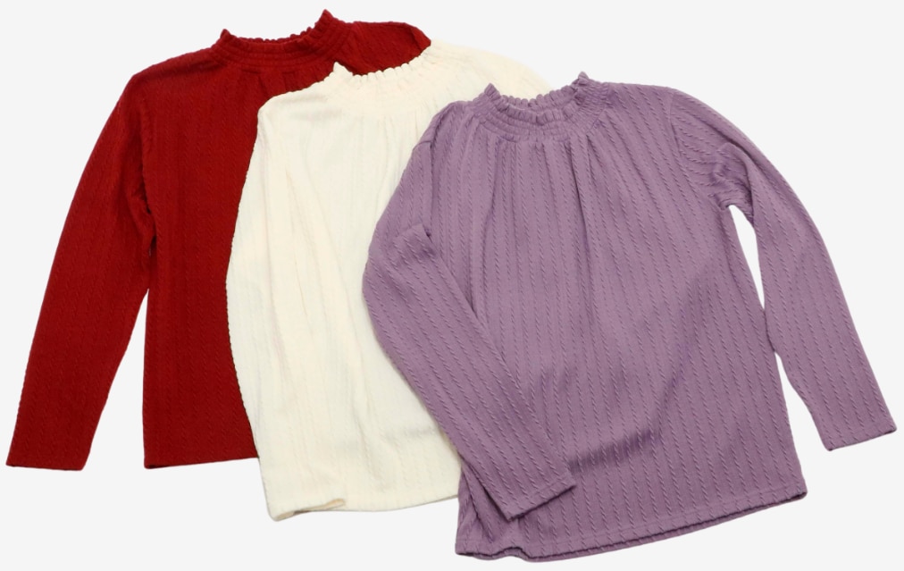 ケーブルジャカードプルオーバー(サイズ:M、L、カラー:ホワイト、パープル、ワイン) 各14,300円