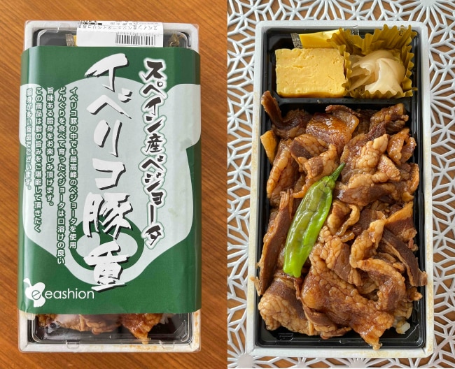 出張があると必ず買って新幹線で食べるほど大好きな、イベリコ豚の最高峰「ベジョータ」を使用したボリューム満点のお弁当。どんぐりを食べて育ったベジョータは口溶けの良い脂身が特徴で、口に入れると脂の甘みと旨みが広がります。味付けが濃く、食べ応えも抜群!甘い卵焼きがお口直しに最適です。