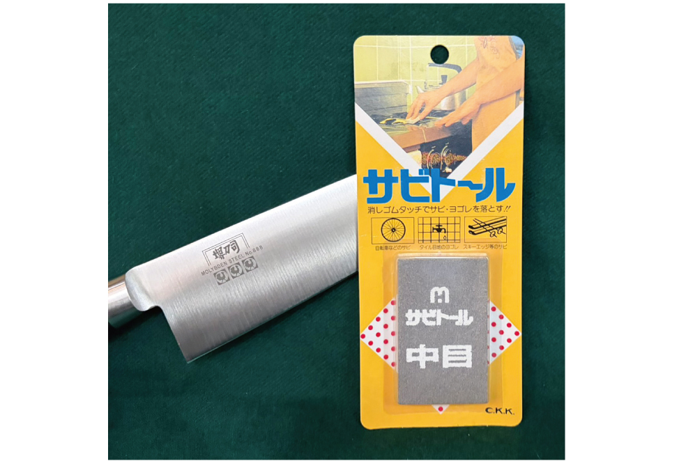 3月18日(水)~4月7日(火)の期間中、〈堺刀司〉の包丁を税込20,000円以上お買上げのお客様に 「サビ取り用消しゴム1点」をプレゼント。