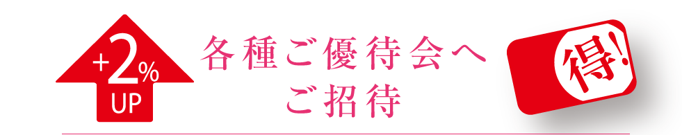 「商品ポイント」が+2%ポイントアップする「ポイントアップ特別ご優待会」や、ご優待対象商品が特別価格でお求めいただける「特別ご優待会」など、キャンペーンやカード会員様限定の催し物にご参加できます。