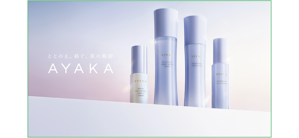 5月1日(金)~6月30日(火)の期間中、カードをご提示のうえ、税込3,300円以上お買上げのお客様、先着10名様に 「AYAKAブライトニングアミュレットシリーズのローション・セラム・ミルク、メーキャップクリームのサンプル」をプレゼント。