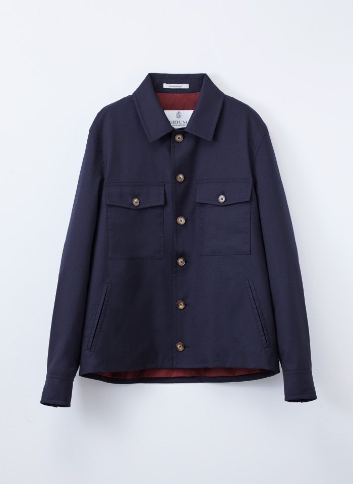 ウール×ポリエステルのストレッチ素材に、あえて化繊のような艶とドライなタッチを加えた別注服地。ダーツを排した新仕様のジャケットは、ビジネススーツ・セットアップとは異なるカジュアルな着こなしにも対応。袖丈やポケット仕様など、好みに合わせてパターンオーダーでお仕立てします。
