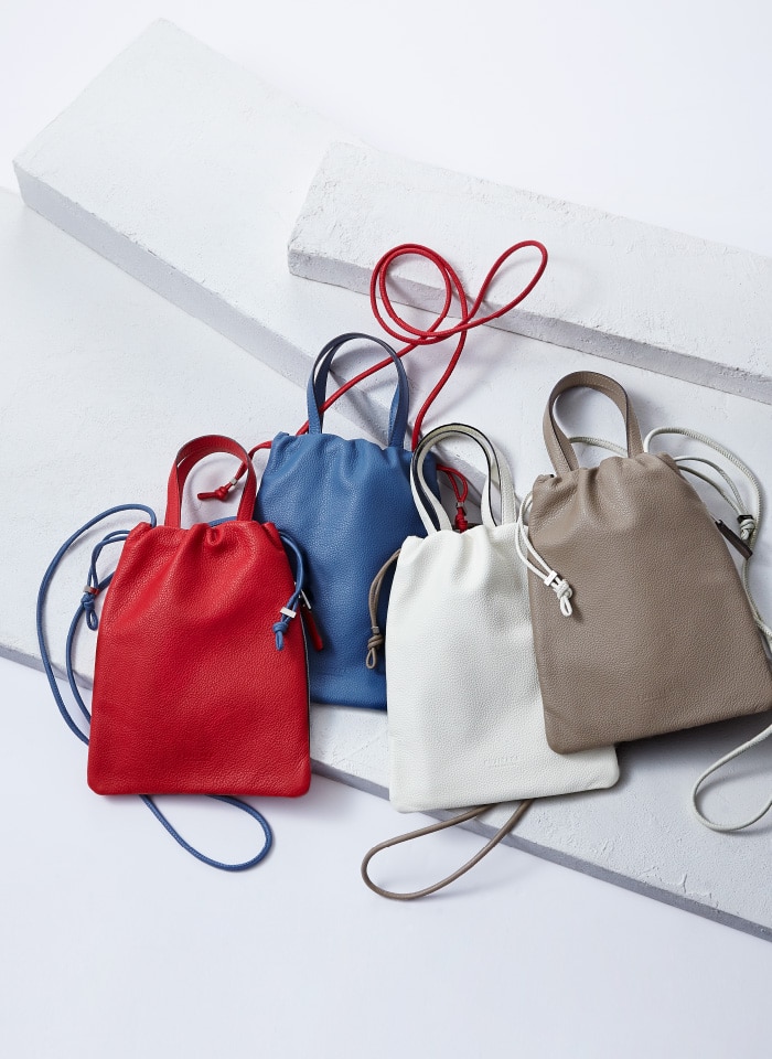 ショルダーにもなる人気の巾着バッグ。ボディと紐の色を10色の中から自由に組み合わせて、自分だけのバッグをお作りいただけます。ほどよいサイズ感なので、差し色として大胆な色の組み合わせに挑戦してみるのもおすすめ。