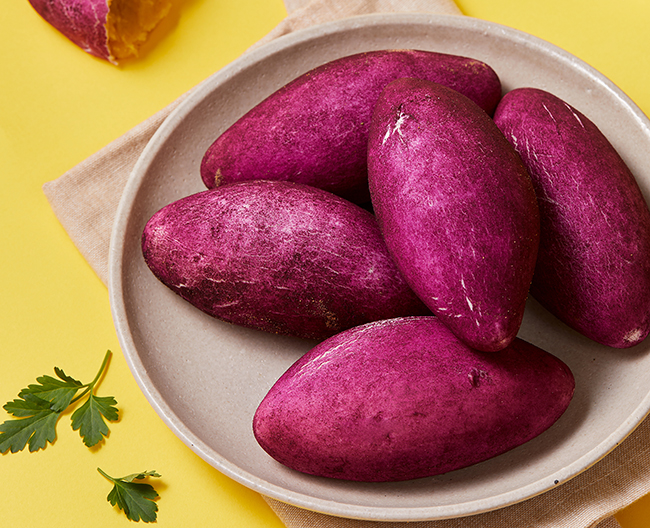 もっちり香ばしいもち米粉の生地の中に、さつまいもの自然な甘さと濃厚なコクが広がります。全12種類の野菜やスウィーツのパンの中で1番人気の商品です。