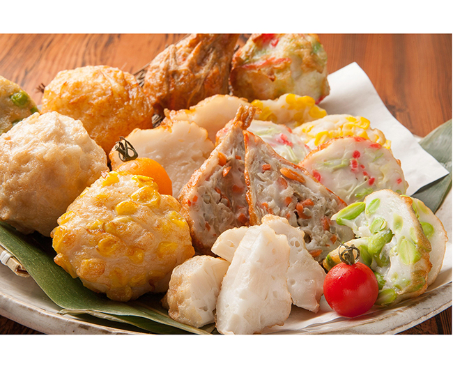 すり身と刻んだ野菜を混ぜて手こねで調理していますので、揚げたてをどうぞ。