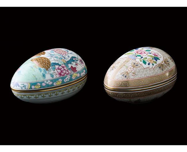 (左)「うずら」タマゴボックスヨコ(約直径10.5×高さ6.5cm) 165,000円〈1点限り〉