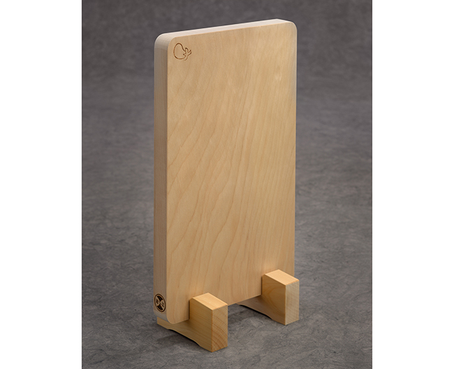 〈双葉商店〉は昭和21年創業のイチョウ材専門店。良質なイチョウのまな板(特に天然の油分が多い赤太部分)は大変貴重になってきており、使用しているイチョウ材は主に福井県産の1枚板にこだわり製作しています。