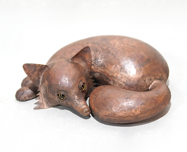 鉄・銅・真鍮等の金属を1枚1枚切断し、ガスバーナーでなまし、金槌で叩いて手作業で製作しています。縁起物や大小様々な新作の動植物のオブジェに加え、身近な植物に合う花器を取り揃えました。