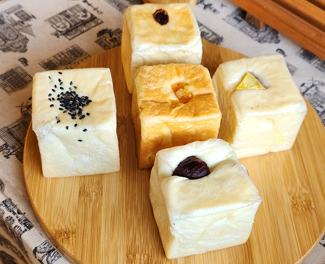 手のひらサイズのかわいい生食パン。ふわふわでしっとりした生地で5種類のお味をご用意しました。