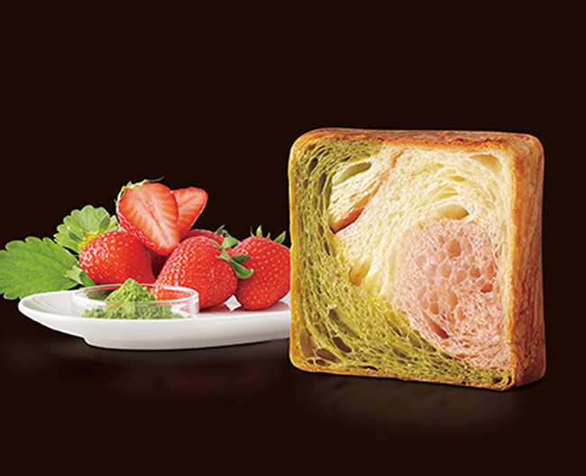 〈祇園辻利〉のお抹茶と爽やかな甘酸っぱい苺の生地とプレーンを織り交ぜた色鮮やかなデニッシュです。
