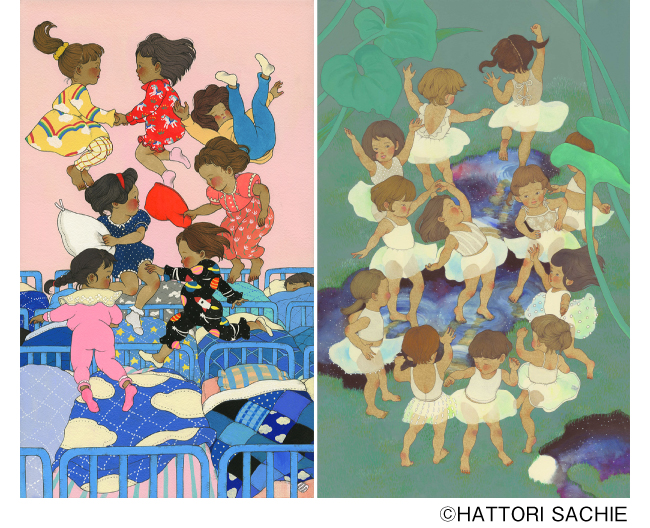 フランス、イタリアで絵本デビューした若手人気の絵本・イラストレーター「はっとりさちえ」。こどもたちがささやかな日常を存分に楽しむ姿を描いた作品をご紹介いたします。鮮やかな色彩と色んなものに扮したこどもたち。一点一点にストーリーがあり作品タイトルも注目してご覧ください。