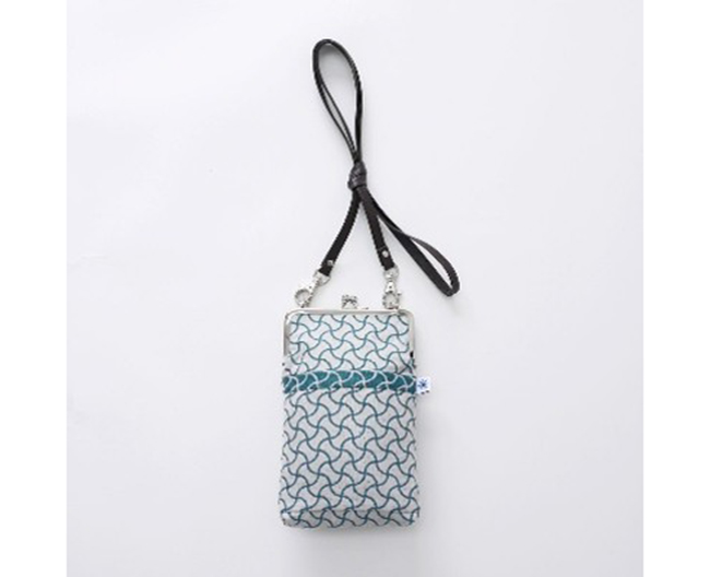 米沢の伝統織物で作られた長財布とスマホがジャストサイズのがま口ポシェットです。