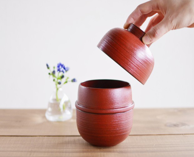 木地に珪藻土を焼いた粉を蒔き、表面を丈夫に仕上げた蒔地塗シリーズ。ころんとかわいい器セットです。