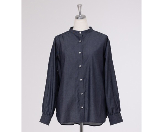 ↑スーピマデニム バンドカラーシャツ(綿100%/M・L) 24,200円〈3点限り〉