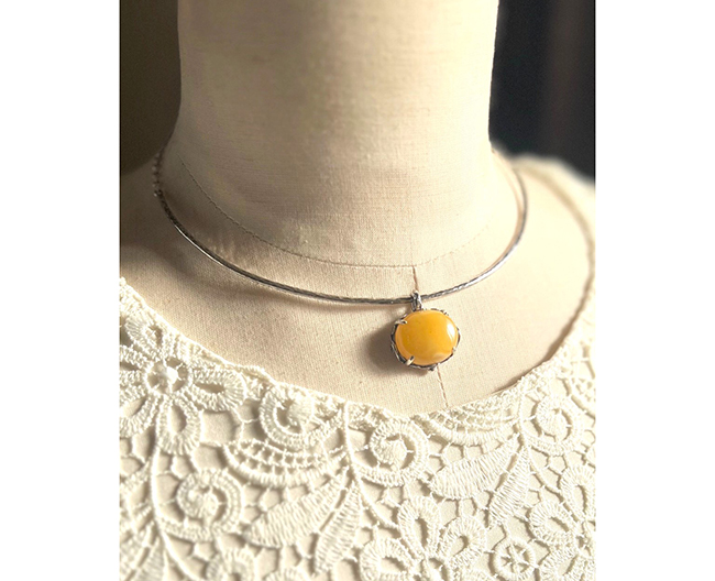 ↑イエローアンバーのペンダントとシルバーチョーカー