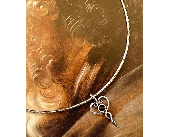 ↑ブラックアンバーのペンダントとシルバーチョーカー