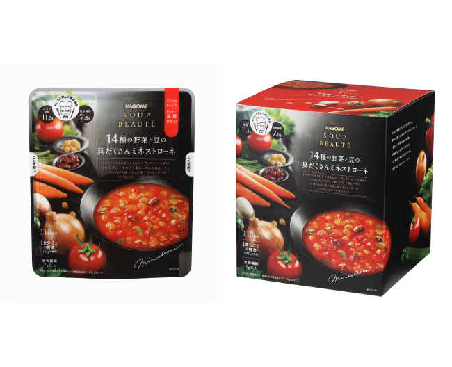 しっかりとしたトマトの味わいと程よい酸味や野菜のコクを感じられ、たまねぎ・にんじん・赤インゲン豆など野菜と豆の旨味を味わえる1食で大満足のスープです。