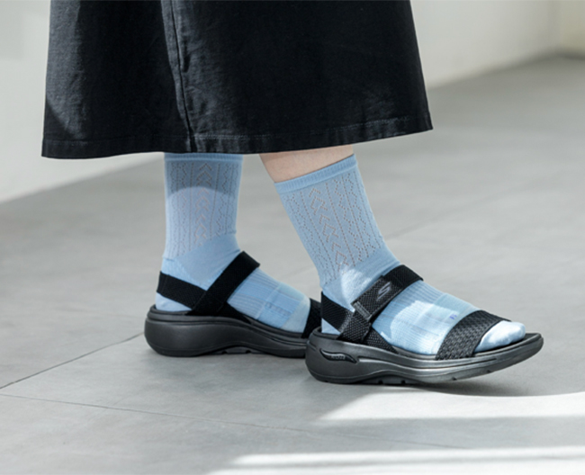 足の疲れを軽減するやさしい履き心地。軽やかに仕上げた、涼やかな夏の「疲れしらず」。サンダルに合わせやすいクロシェレースの編地は、蒸れにくいのもうれしいポイント。ゴールデンウィークの旅行やお買物、母の日のプレゼントにおすすめです。