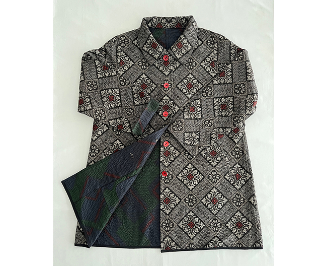 大島紬を2枚合わせ、手刺し子を施し仕立てたリバーシブルで様々な着こなしをお楽しみいただけるジャケット。