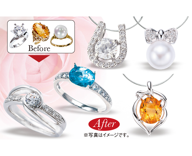 指輪のサイズ直しやネックレスのチェーン切れ、真珠の糸替えなどのお修理や、永年ご愛用いただいているジュエリーの点検・洗浄をいたします。またリフォームでは、お客様のご要望をじっくりとお伺いし熟練の職人がジュエリー本来の輝きと魅力を甦らせます。