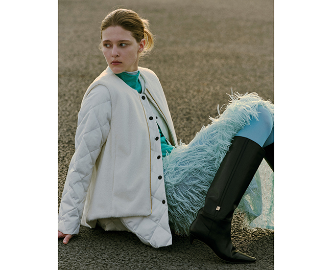 素材とディテールに〈ランバン オン ブルー〉のエッセンスを加え、モードに仕上げた〈TAION × LIMONTA EAST〉とのコラボレーションアイテムを大阪高島屋先行で販売いたします。すっきりとした印象ながら適度なゆとりがあり窮屈に感じない着用感と、ミニマルなデザインを引き立てるAラインシルエットが特徴。ケープスタイルでも着用でき、幅広いスタイリングをお楽しみいただけます。