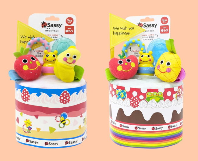 ダイパーケーキ かみかみミツバチ(ピンク・ブルー) 各4,180円
