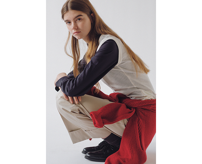 木に実るダウンといわれるカポックのアウターや、間伐材を用いたデニム、草木染めといった様々な自然素材を採用し、素材そのもののストーリーを反映した服をご紹介いたします。大阪の繊維商社と協業し、天然素材カポックのダウン「New Nature Down」の量産を実現。持続可能な日本のものづくりを提案しています。