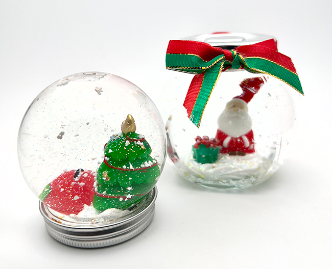 サンタクロースや雪だるまなどを飾って、お気に入りのスノードームを作りませんか。
