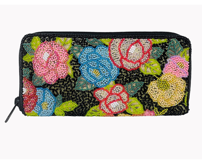 ↑手刺しゅうビーズ ラウンドファスナー長財布 38,500円