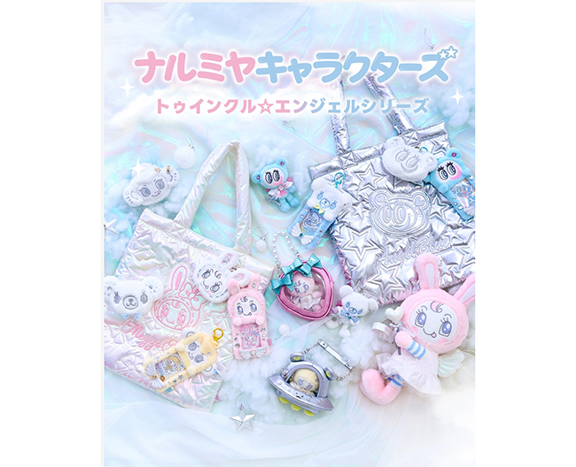 ナルミヤキャラクターズアイテムのうるうるの瞳と天使の羽がかわいい「トゥインクル☆エンジェルシリーズ」が発売。白を基調に、パステルカラーやラメ、オーロラ素材をアクセントにした、トレンド感たっぷりのデザインです。