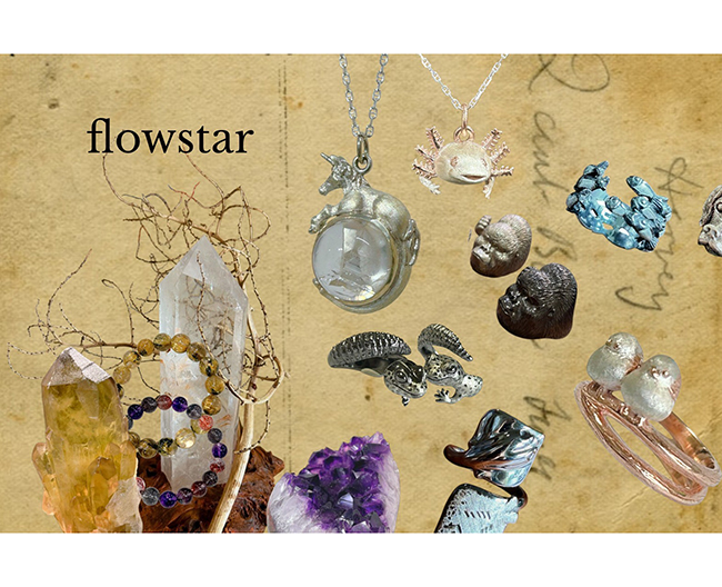 動植物や魚をモチーフにしたデザインや、天然石を使ったオリジナルアクセサリーをご紹介します。