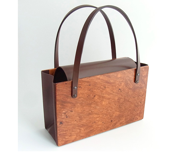 ↑「折りたたみバッグ」(カリンこぶ材/約25×10×高さ15.5cm) 88,000円