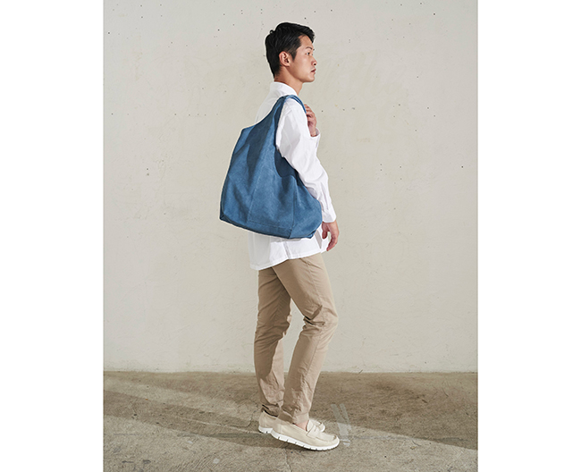 〈ENISICA〉の中で一番大きな牡鹿をイメージしたオニシカ・バッグ。それを一回り大きくし男性の体に合わせて作ったマニッシュな雰囲気のショルダートートは、大きめの鹿2頭分(オニシカ分)の革を贅沢に使った、裏地なしの仕立て。 個体が小さく、本来は大きな製品を作りにくい鹿革ですが、〈ENISICA〉ならではの工夫で最大限に活用しています。丈夫でしなやか、驚くほどの軽さと撥水仕様で革素材でも気を使わず「日常使い」にこだわって仕立てました。