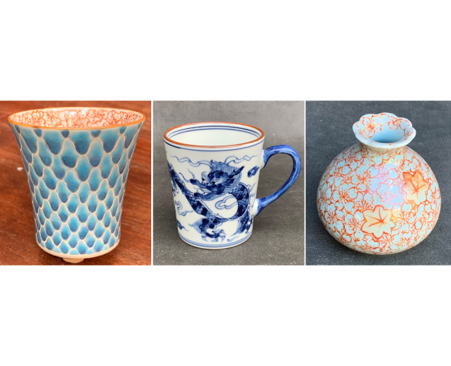 京都 嵯峨野の化野念仏寺前に窯を構え、白く半透明な磁器土を用い、青一色の染付や華やかな上絵の作品を制作しています。