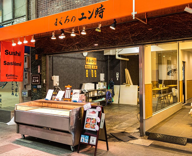 4代続く独自技術で捌く本まぐろが人気の〈まぐろのエン時〉が、地下1階鮮魚売場に〈黒門 エン時〉として登場。市場で毎朝目利きした鮮魚を、お造りやお寿司にして販売いたします。また、併設するイートインでは、生本まぐろを中心に、日々の仕入れによって毎日違ったネタをお楽しみいただけます。