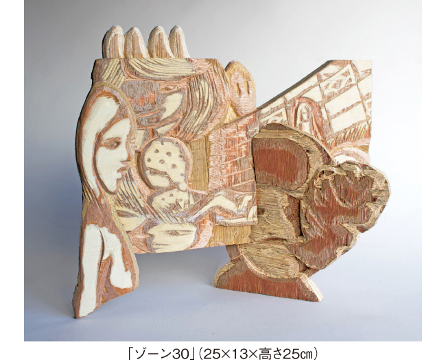 出会った人々や見た景色、印象に残った瞬間を再構築して木彫で表現されている浅野井春奈先生の初個展。昨今、薄い木の材を圧着した合板素材の特性に触発され、陰影と線描の要素を取り入れた制作により絵画的な作品を目指しています。