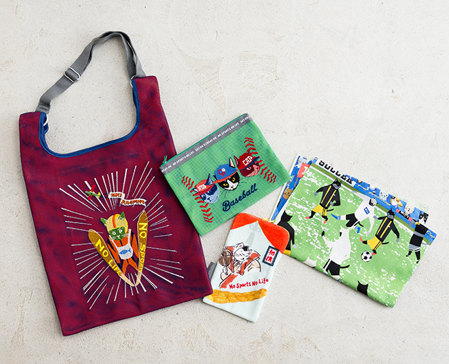 バッグ(約53×35×マチ12cm) 4,950円/ポーチ(約18×24cm) 2,750円/手ぬぐい(約90×32cm) 1,650円/タオルポーチ(約22×13cm) 1,320円