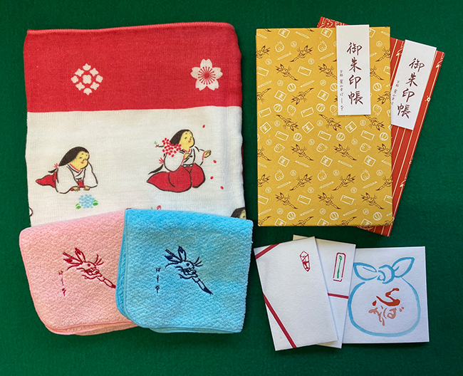 ハンカチやタオル、トートバッグなど春のお出かけにぴったりなアイテムをご用意いたしました。また、御朱印帳や心づけに使うぽち袋など、〈嵩山堂はし本〉オリジナル商品の数々をお楽しみください。