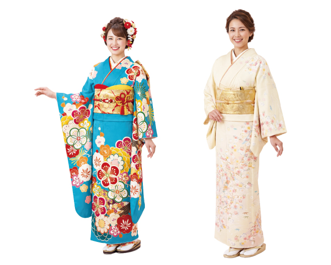 (左)振袖(撮影使用品)  110,000円 / (右)訪問着(展示サンプル品)  110,000円
