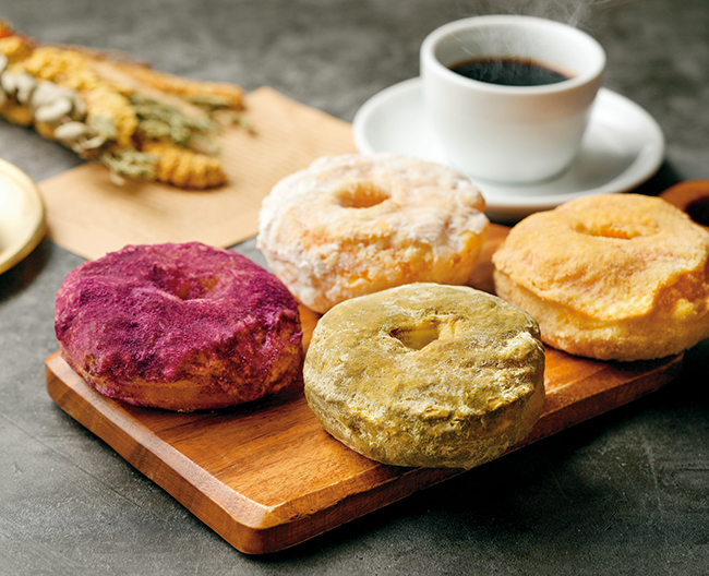 外はサクッ、中はふんわりした食感の台湾ドーナツ。紫芋やジャスミンミルクに加え、大阪高島屋限定の杏仁フレーバーも登場。