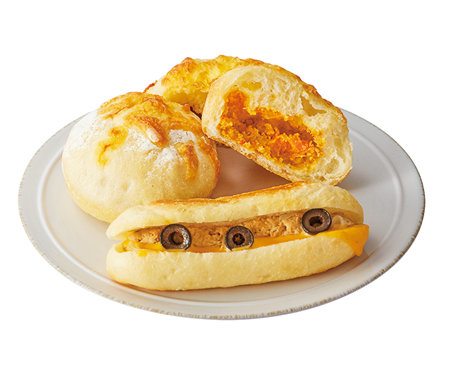 チャバッタ生地にカレーを包んだパンやフォカッチャ生地の惣菜パンなど、新作パンがずらり。