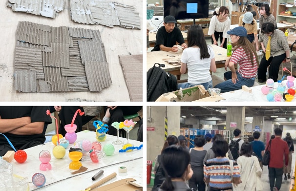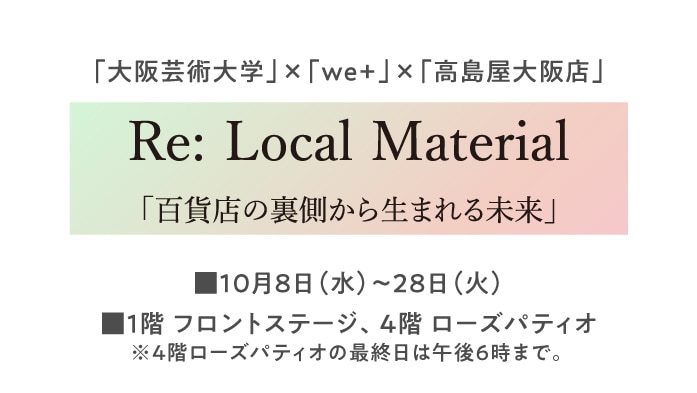 - 大阪芸術大学の学生が、コンテンポラリーデザインスタジオ〈we+〉監修のもと、高島屋大阪店とコラボレートした産学連携プロジェクト。百貨店のバックヤードで日々廃棄される段ボールや緩衝材などを、暮らしに根差した「新たな土着的素材」と捉え直し、再利用によって新しい価値を創造します。