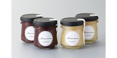 - 間引かれた未熟ぶどう(青ぶどう)の鮮やかな風味とバターのクリーミーな甘みが味わえる青ぶどうバター、兵庫県三木市産のぶどうを1粒1粒選別し、手作業で皮を剥いて仕上げた肉厚の果実が楽しめる赤ぶどうジャムのセットです。