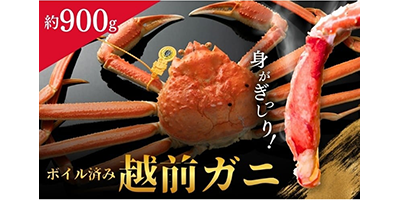 - 冬の味覚の中でも、特に人気の「越前ガニ」を水揚げ後、すぐに浜茹でしたものをお届けします。身がしまり、甘みが強いのが特徴です。