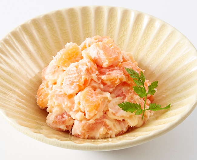 北海道二海サーモンを北海道産生乳を使ったチーズソースとあわせた濃厚な味わいの一品。