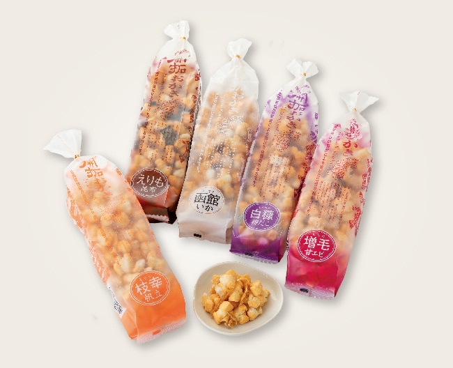 人気の北海道開拓おかきが今回も登場。期間限定の標津秋鮭、野村北海シマエビ、枝幸毛がにもご用意しております。