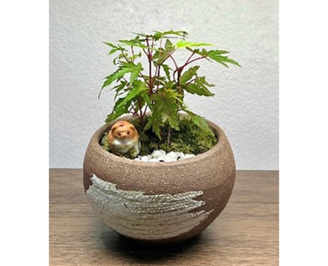 可愛らしい鉢にモミジの寄せ植えを作ります。