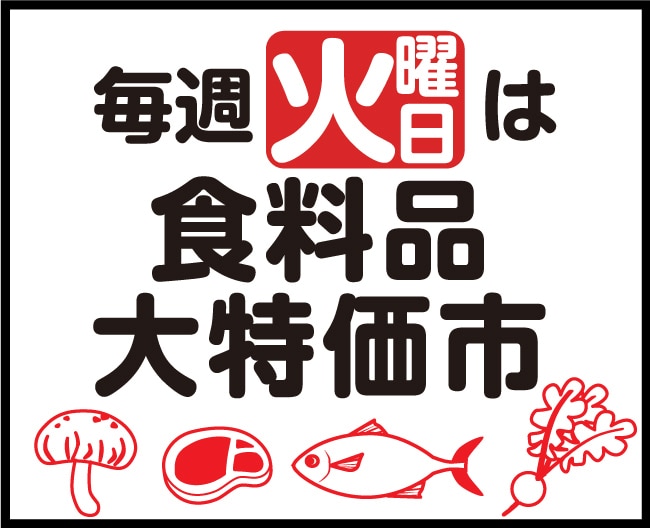 生鮮・惣菜などの食料品セルフコーナーだけでなく、菓子売場などを含めた食料品フロアをあげて、1日開催だからできる「いいものを安く」をコンセプトに開催。